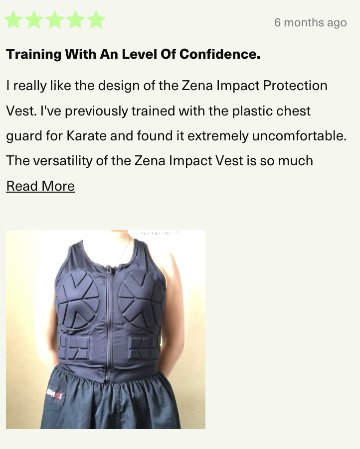 Zena’s patented impact zone technology disperses shock and reduces injury risk, giving you the confidence to train and compete at full intensity